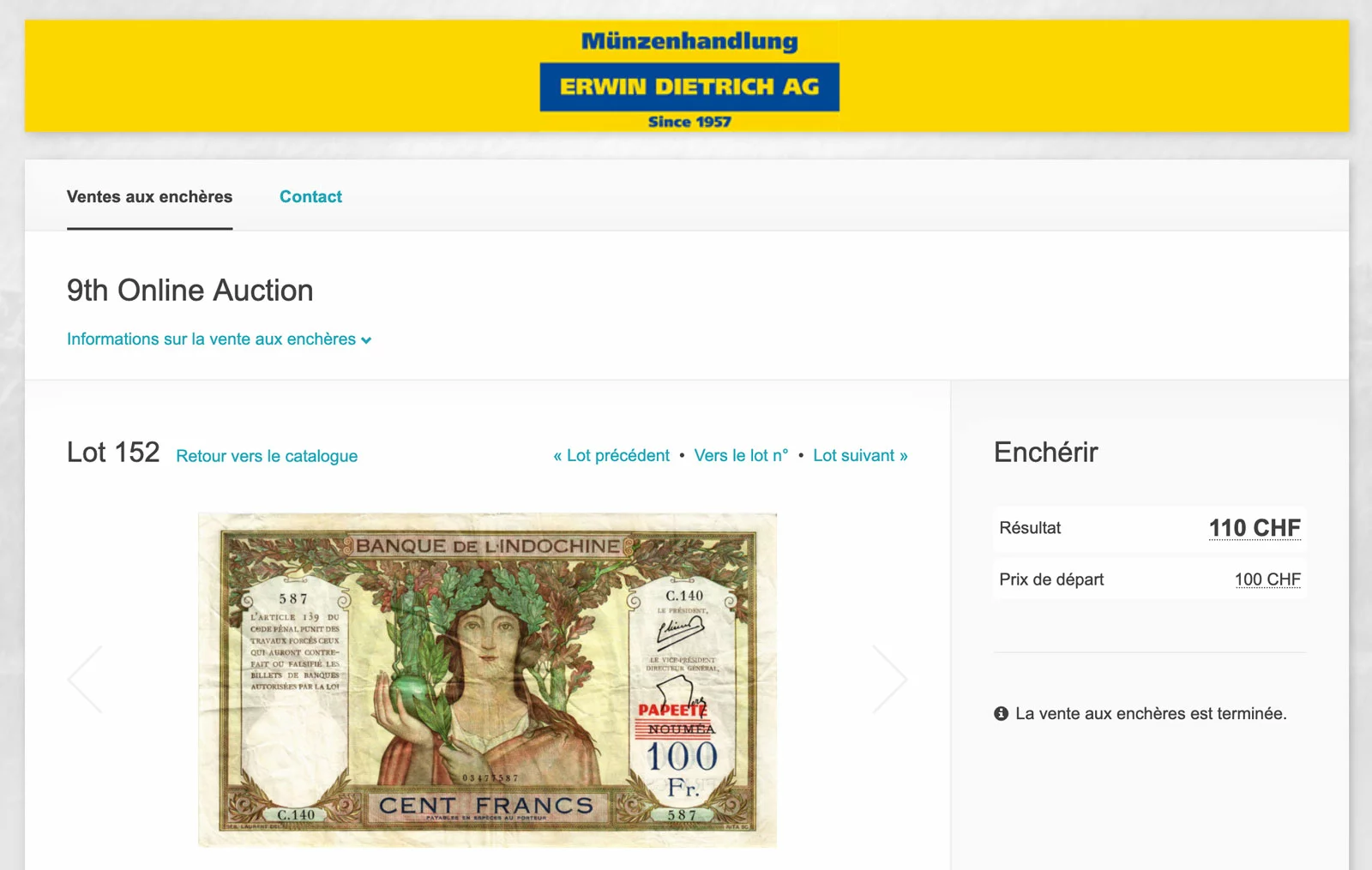 Si vous êtes intéressé par un vrai billet, je vous en ai trouvé un exemplaire actuellement en vente sur biddr au prix de départ de 100CHF.