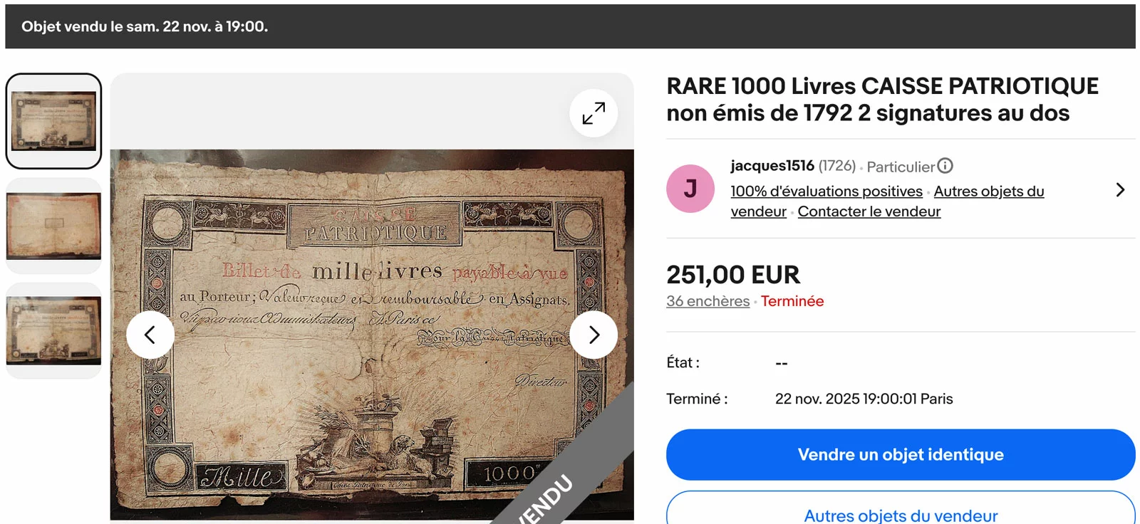 Ce type est d’une extrême rareté. Un exemplaire en petit état a réalisé le prix de 251€ en novembre 2025. C’était sans doute une occasion inespérée de rentrer ce document historique dans vos classeurs. Les quelques exemplaires observés, dont certains à la vente, sont répertoriés dans le tableau ci-dessous :