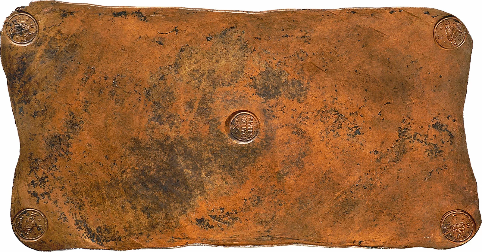 Ces premières pièces de cuivre sont frappées lorsque la Suède adopta l’étalon-cuivre en 1624. Le cuivre valant moins que l’argent, de grandes plaques de cuivre deviennent nécessaires pour remplacer les petites pièces d’argent. Cette monnaie est alors unique en Europe par ses dimensions : une plaque d’une valeur de 10 dalers d’argent mesure environ 30 × 70 cm et peut peser près de 20 kilos. Peu pratique au quotidien, ces plaques deviennent le symbole des difficultés monétaires du pays. C’est dans ce contexte peu engageant que Johan Palmstruch reçoit, le 30 novembre 1656, le privilège royal de fonder une banque en Suède.